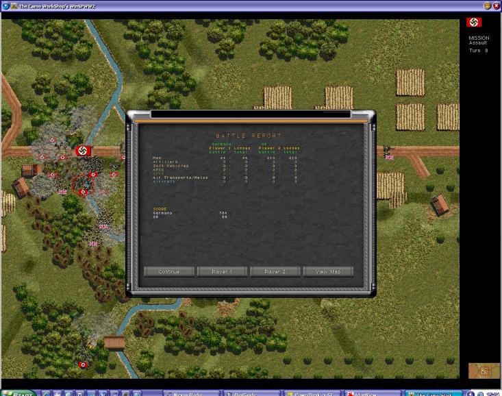 If you "didn't inflict damage on a single squad" then maybe you need to check your preference settings becasue you can see how many casualties the Brits took in Imps results and my results on my second go through mirror that and not a single one of those 2 in mortar squads survived the experience