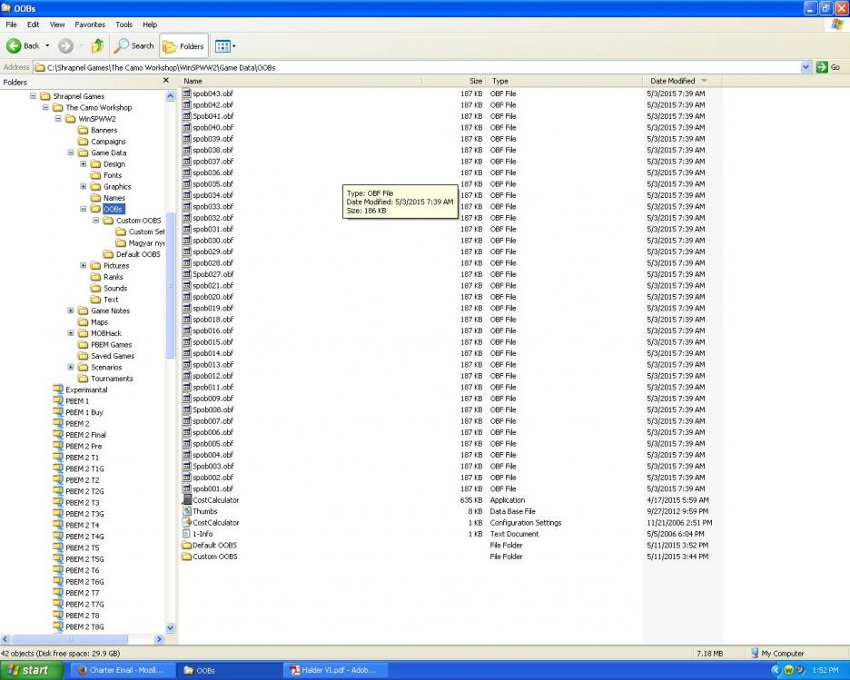 I just convinced a friend of mine to play SPWW2 using PBEM. We are having a strange problem. When I originate a game everything works fine, but when he does when I try to open the game I get an error message about the obat file being out of sync. We are both on the latest version; I have the CD and he has the DL.