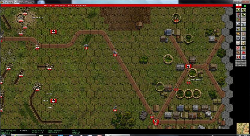 I've attached two screen prints, one by the Polish player and one by the German player of the same area of the map. On the Polish screen print, entrenchments are shown in several hexes; on the German screen print these entrenchments do not appear despite there being a German unit in one of the hexes.