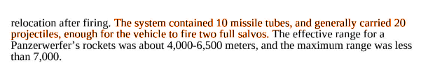 Unit 157, 'Panzerwerfer 42' game has 10 rockets, actually has 30, carries 2X10 reloads. see
